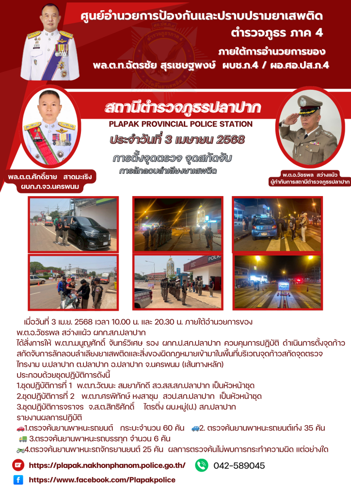การตั้งจุดตรวจ จุดสกัดการลักลอบขนย้ายยาเสพติดในพื้นที่ 4 เมษายน 2568 โดย Plapak admin / ข่าวประชาสัมพันธ์,ข่าวงานสืบสวน