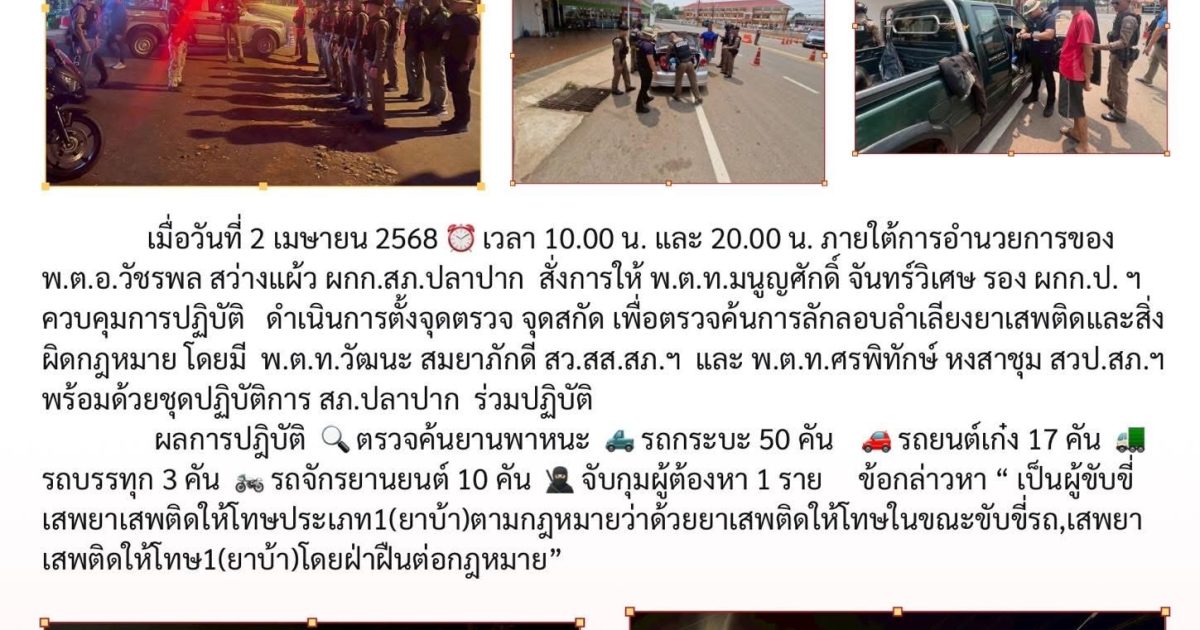 ตั้งจุดตรวจจุดสกัด การลักลอบลำเลียงยาเสพติด 3 เมษายน 2568 โดย Plapak admin / ข่าวประชาสัมพันธ์,ข่าวงานสืบสวน