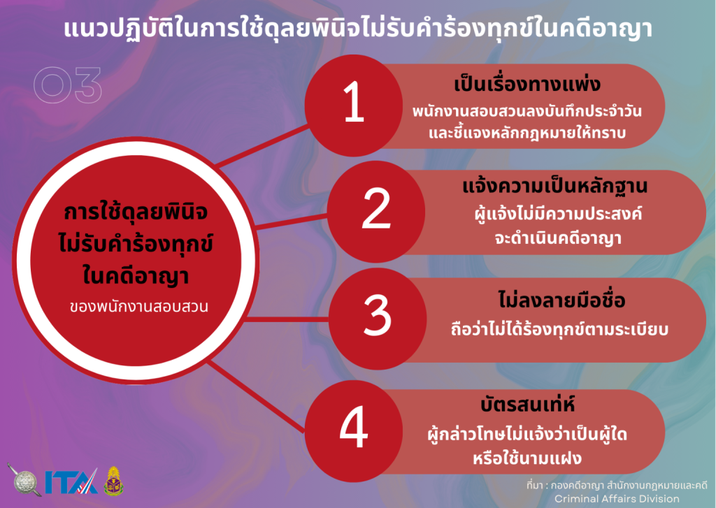 8.3 แนวปฏิบัติในการใช้ดุลยพินิจไม่รับคำร้องทุกข์ ในคดีอาญา